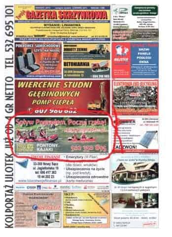 Jeśli ktoś jest sprytny, i mieszka gdzie trzeba, może spłynąć Popradem 10% taniej. A wszystko to za sprawą kuponów rabatowych dostępnych w darmowych GAZETKACH SKRZYNKOWYCH. Kupony na nasze pontonowe i kajakowe atrakcje wydrukowane są w regionach: Limanowa, Brzesko, powiat nowotarski, powiat Nowy Sącz, Krynica Zdrój, Muszyna, Piwniczna, Dębica i powiat dębicki, powiat mielecki i kolbuszowski.