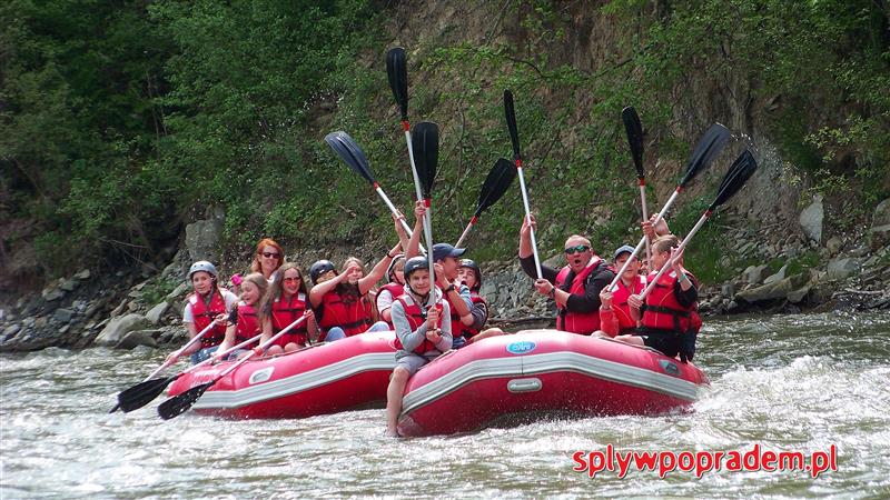 Nie ma to jak być ze szkolnymi przyjaciółmi na spływie pontonowym w Dolinie Popradu. Opiekunowie mają taką samą frajdę jak dzieciaki.
